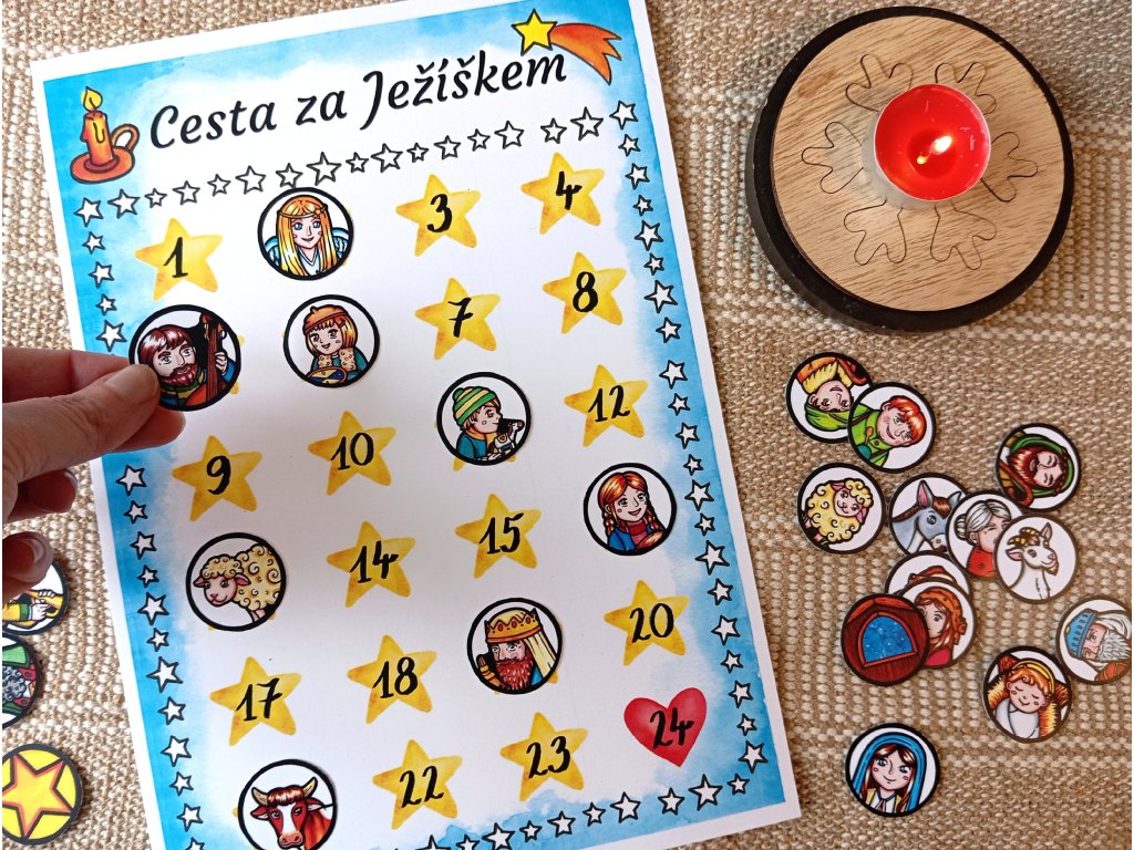 - adventní list "Cesta za Ježíškem", který vám pomůže sledovat vaší betlémskou výpravu až do Štědrého dne, kdy do jesliček umístíte Ježíška
